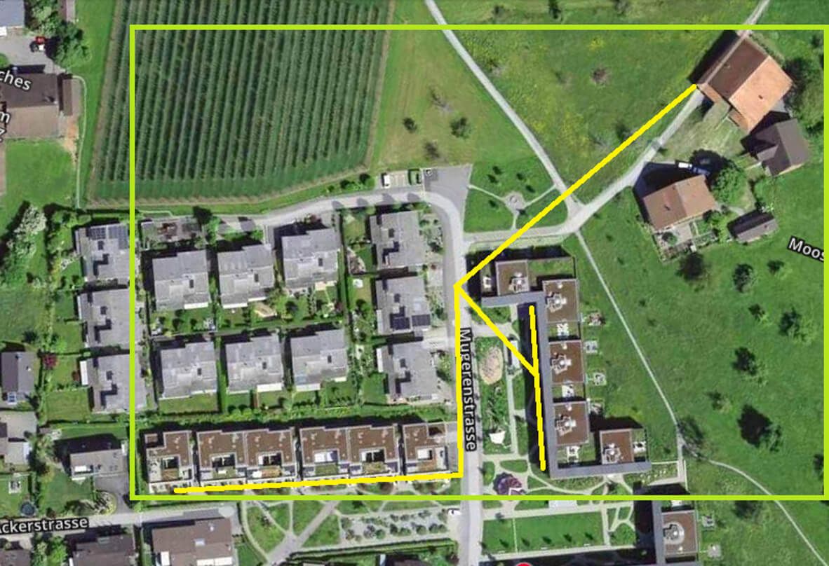 Zusätzlich kann an einem zentralen Standort ein grösserer E-Speicher installiert werden. Dieser speichert überschüssigen Solarstrom und stellt ihn auch in den Abend- und Nachtstunden allen angeschlossenen Häusern des virtuellen ZEV zur Verfügung.